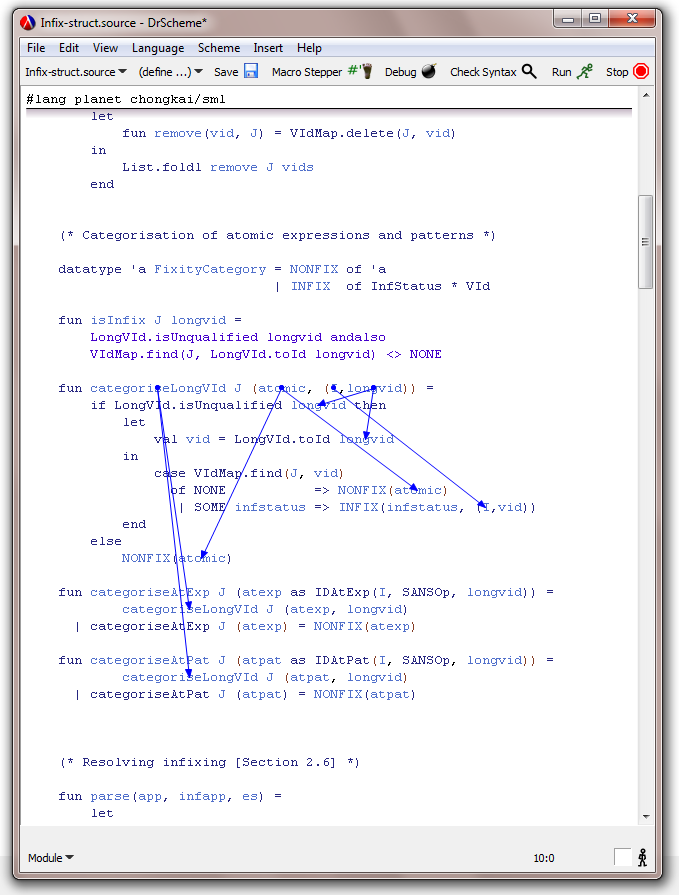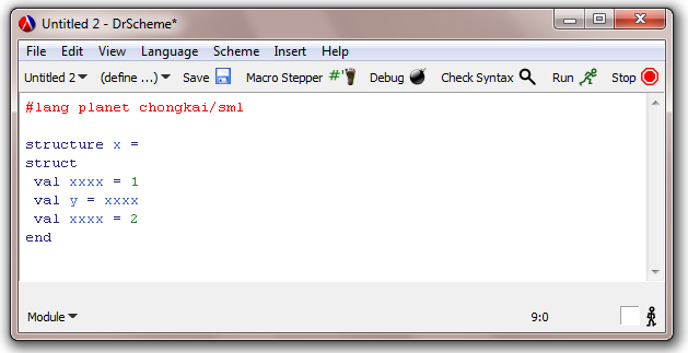 For example, the following figure is a simple SML program, run in DrScheme.