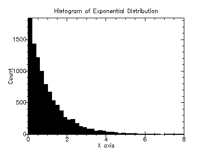Example: Histogram of random variates from the geometric distribution with probability 0.5.